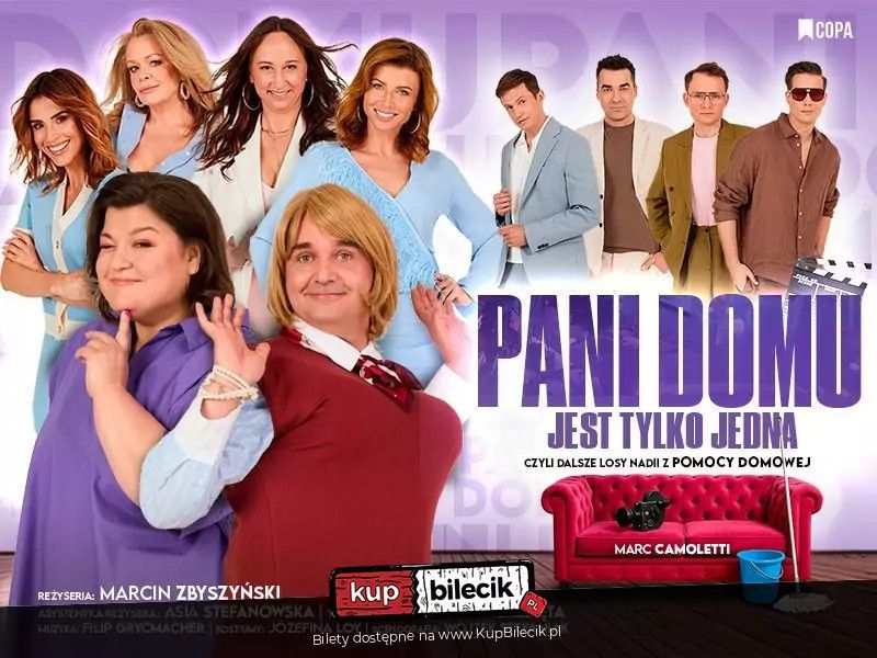 bilety: Pani domu jest tylko jedna - to wystrzałowa farsa mistrza gatunku Marca Camolettiego w tłumaczeniu Bartosza Wierzbięty (Pomoc Domowa, Boeing Boeing). Kto jest kim? Czy romans się wyda? Kto kogo zdradza i czy Nadia znow uratuje sytuację? Tego dowiecie się oglądając "Pani domu jest tylko jedna"! Czas umili Wam gwiazdorska obsada! Pani domu jest tylko jedna artyści: Dominika Gwit, Paweł Koślik, Agata Załęcka, Michalina Sosna, Daria Widawska, Monika MariottiPani domu jest tylko jedna - to wystrzałowa farsa mistrza gatunku Marca Camolettiego w tłumaczeniu Bartosza Wierzbięty (Pomoc Domowa, Boeing Boeing). Kolejna część przygód Nadii – szalonej Pomocy Domowej, która tym razem stanie się… aktorką! Bilety do nabycia na: KupBilecik.pl |